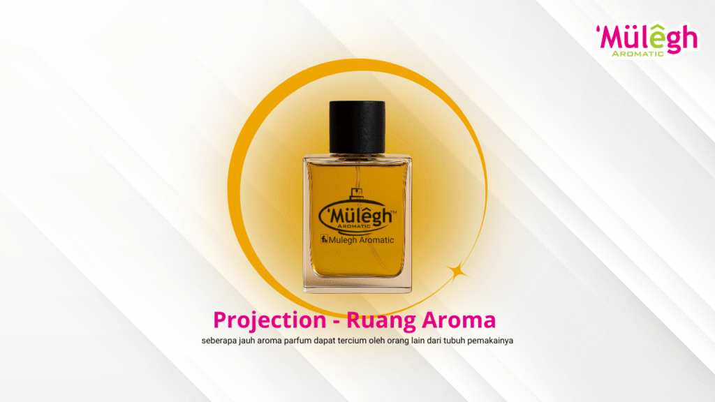 Projection menjelaskan seberapa jauh aroma parfum dapat tercium oleh orang lain dari tubuh pemakainya. Biasanya, projection paling kuat terjadi pada 1-2 jam pertama setelah parfum disemprotkan.
