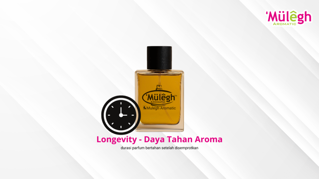 Longevity adalah durasi parfum bertahan setelah disemprotkan. Ini yang menentukan berapa lama kita bisa menikmati aroma tanpa harus menyemprot ulang.