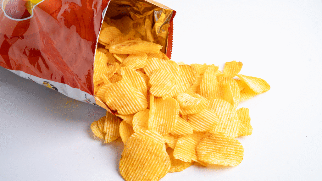 2. Camilan kemasan, seperti kerupuk, keripik kentang, keripik jagung, snack gurih, popcorn dll.