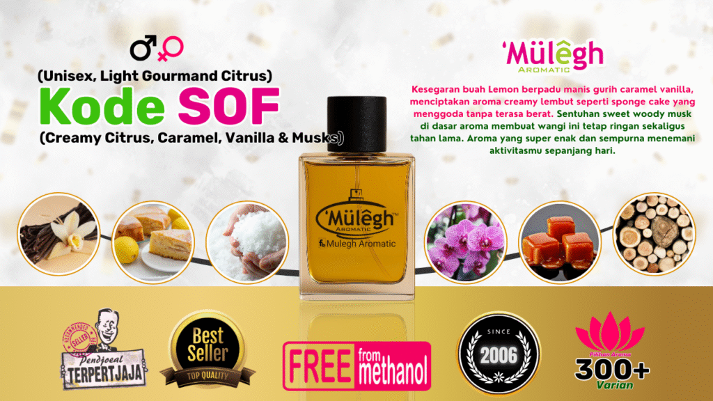 Komposisi aroma yang seimbang : Biasanya menggabungkan manis, segar & creamy atau sedikit woody untuk memberi dimensi.